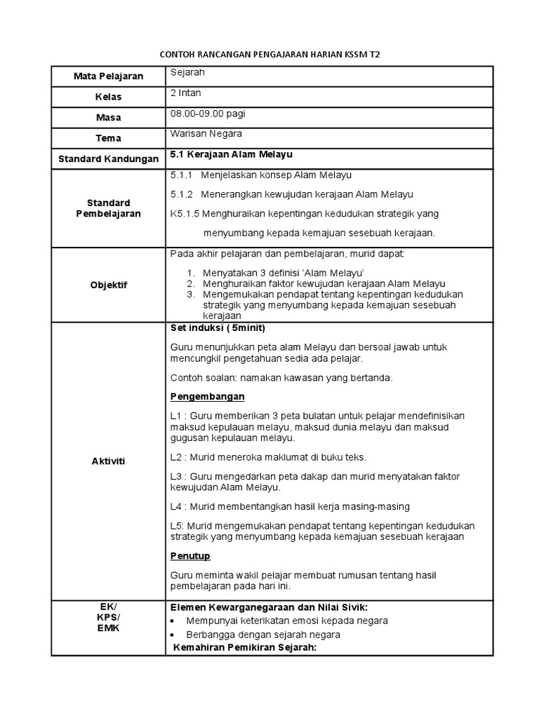 RPT DPK 2020 Sejarah Tingkatan 2 KSSM. Bersama-sama ini disertakan satu pautan google drive yang mengandungi contoh RPH dan Examplar mata pelajaran Pendidikan Sivik Bahasa. WARISAN NEGARA Tajuk 5.