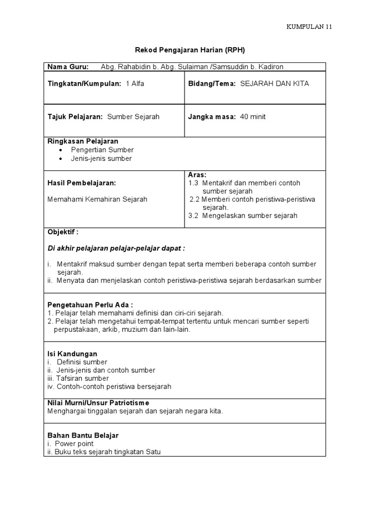 Contoh Rph Sejarah Tahun 4 Bab 1