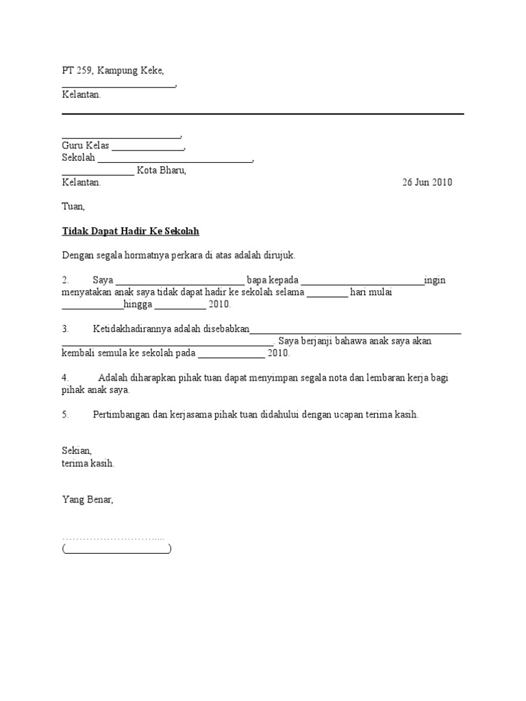 Surat Tidak Hadir Ke Sekolah Pdf